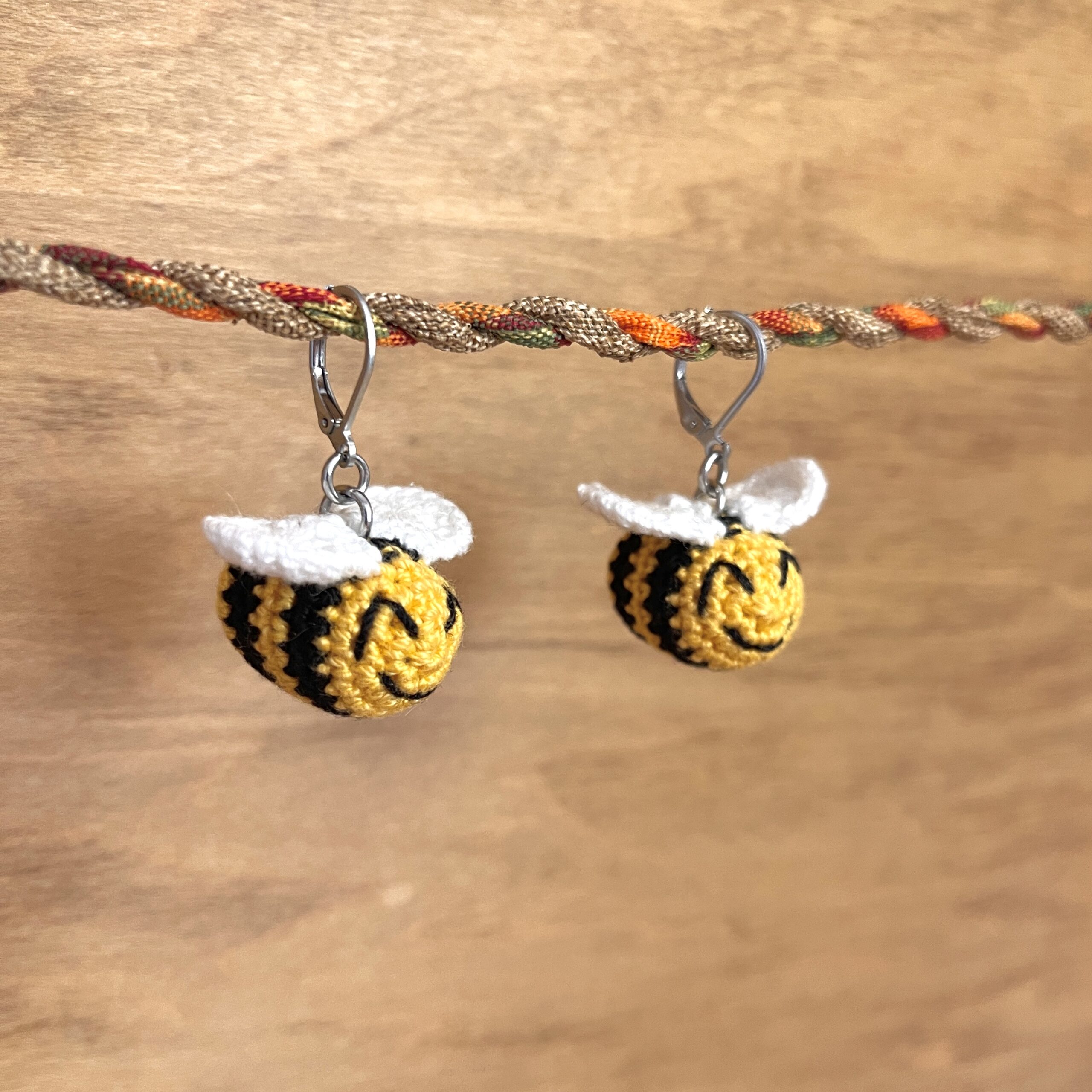 + Free ShippingHandmade crochet dangly bee earrings