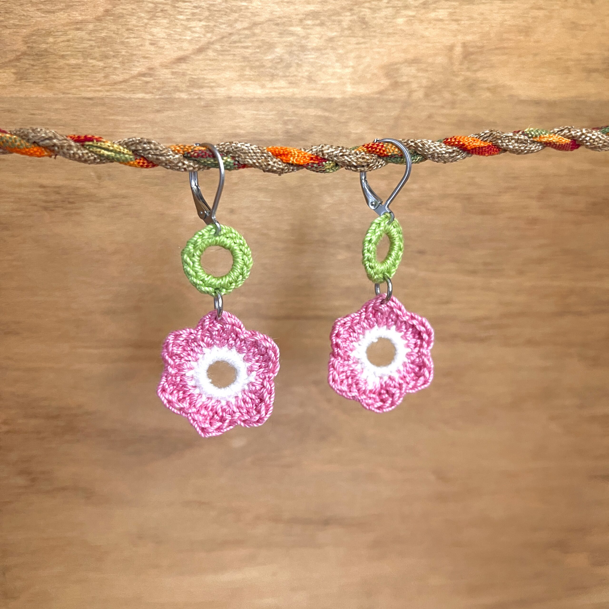 Handmade crochet daisy earrings come in either white or pink (as shown above). Earring hooks are made of surgical stainless steel, and have lever back closures so they will never fall out! Crochet thread is 100% Egyptian cotton. These earrings are extremely lightweight and comfortable, perfect for everyday wear!