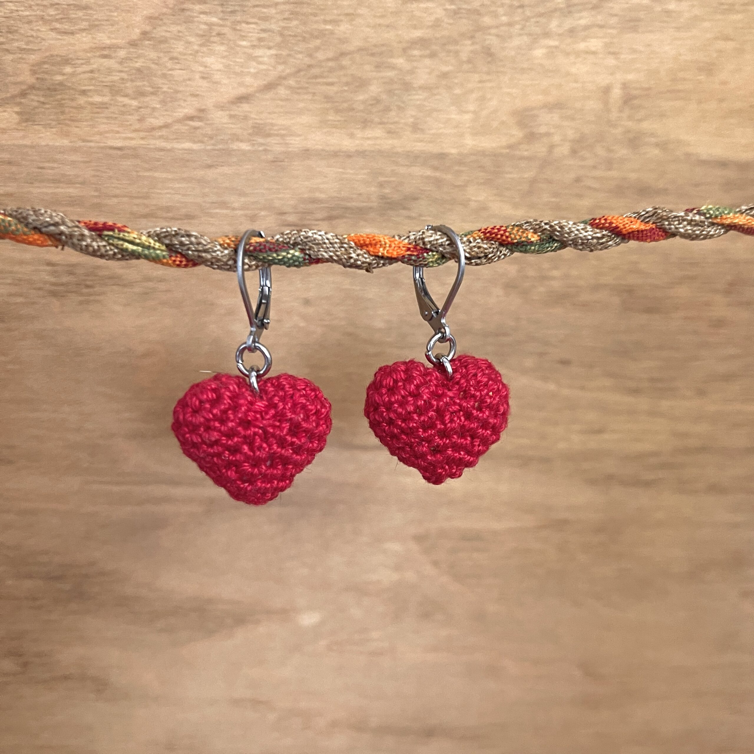 + Free ShippingHandmade crochet amigurumi heart earrings